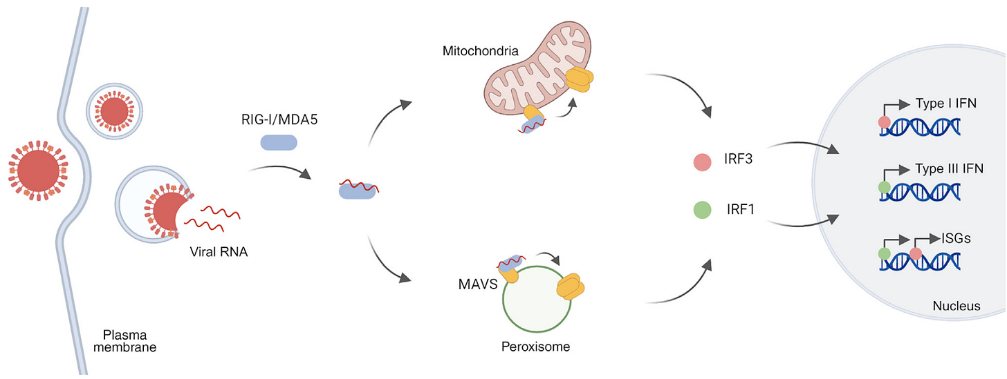 Viruses know that peroxisomes are of utmost importance in viral defense, hence why they hijack the peroxisomes: