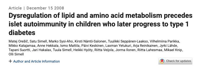 Low childhood levels of plasmalogens are associated with onset of T1D.