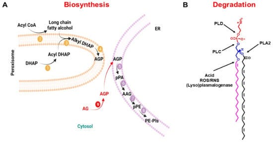 Entry of viruses into the cells where this happens means that there is loss of peroxisome function and PL synthesis.
